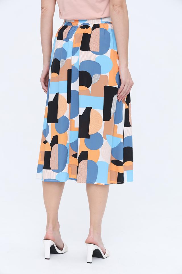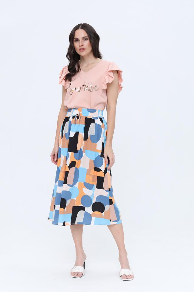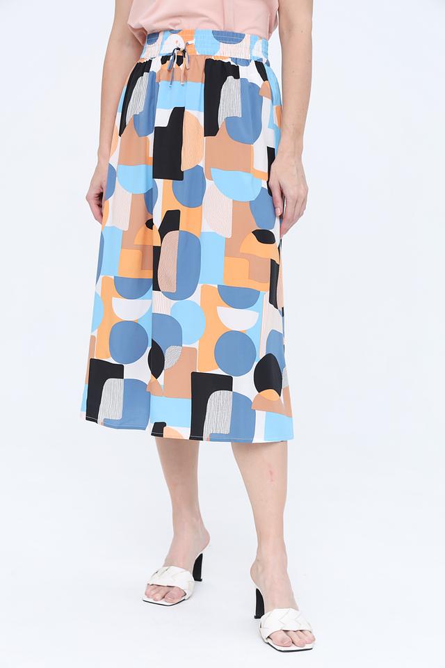 Эта юбка от Tom Tailor станет ярким акцентом в вашем гардеробе. Модель выполнена в миди-длине и украшена оригинальным геометрическим принтом, сочетающим в себе оттенки голубого, оранжевого и чёрного.