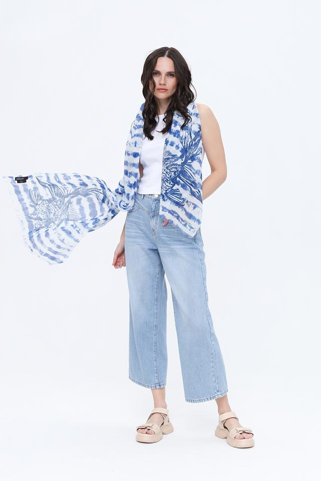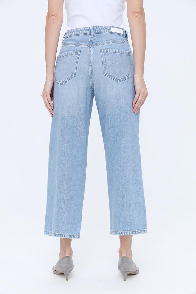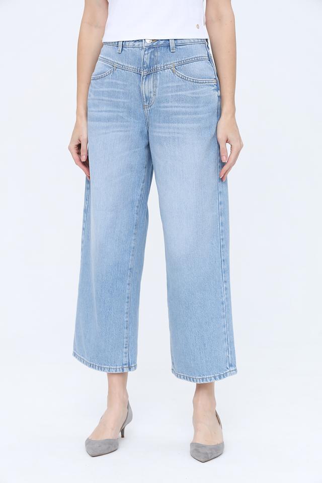 Особенности: Высокая посадка, крой клеш, классический деним, универсальный цвет.