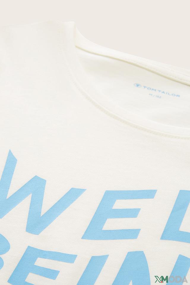 Белая футболка Tom Tailor для девочки с ярким принтом "WELL BEING CLUB". Изготовлена из 100% хлопка, обеспечивая комфорт и удобство в носке. Отличный выбор для повседневной носки. Состав: хлопок 100%