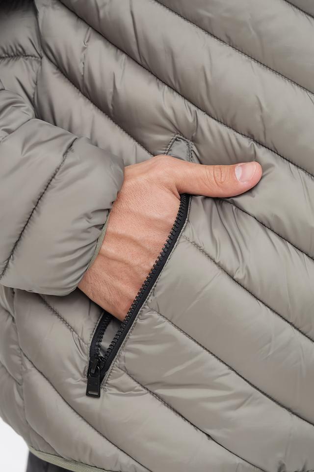 Куртка имеет стеганую фактуру, которая придает ей современный вид. Воротник-стойка обеспечивает дополнительную защиту от ветра и холода. Застежка-молния позволяет легко надевать и снимать куртку.