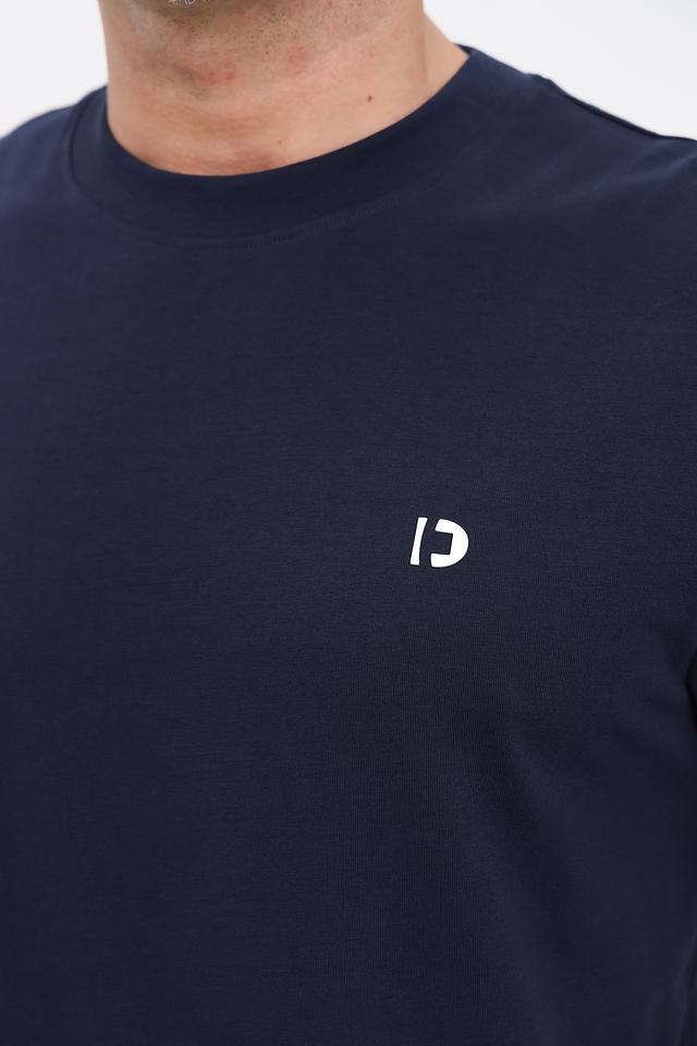 Футболка имеет короткий рукав и круглый вырез горловины. На левой стороне груди расположен небольшой логотип бренда, выполненный в белом цвете, что добавляет лаконичности и стиля.