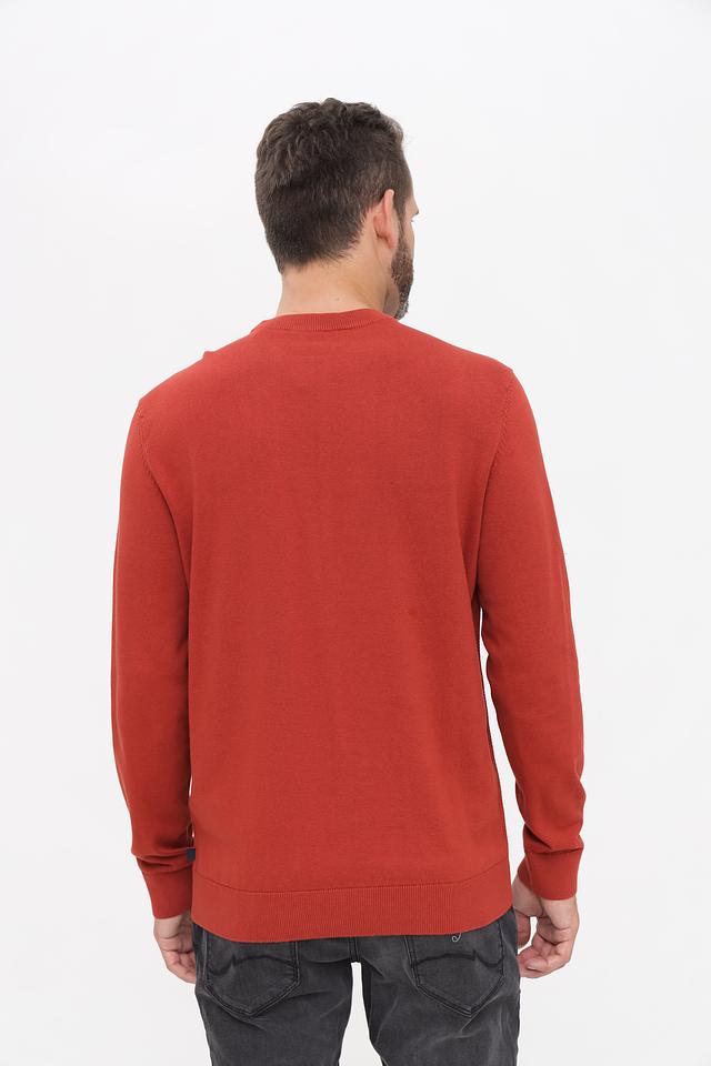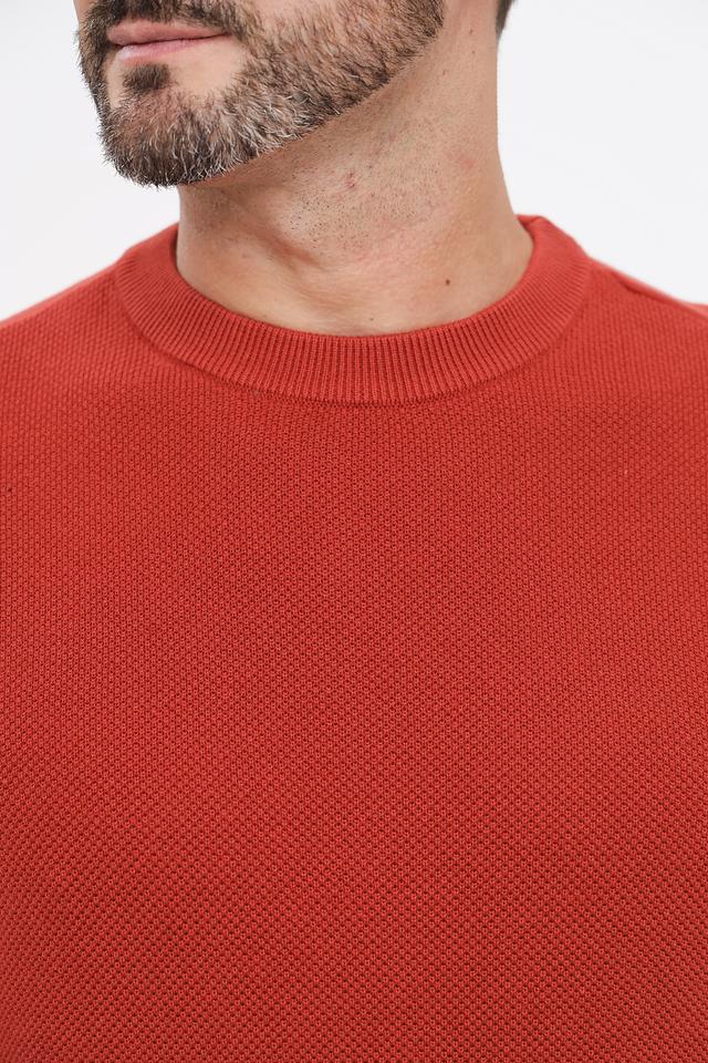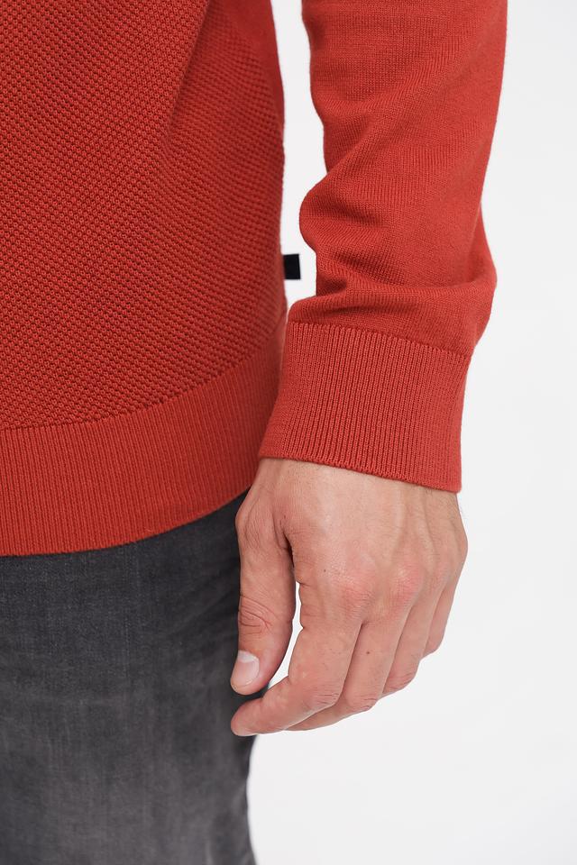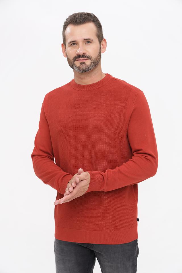 Мужской джемпер Tom Tailor терракотового цвета выполнен из 100% хлопка. Модель имеет круглый вырез горловины и фактурную вязку. Комфортный и стильный выбор для повседневного гардероба. Состав: хлопок 100%