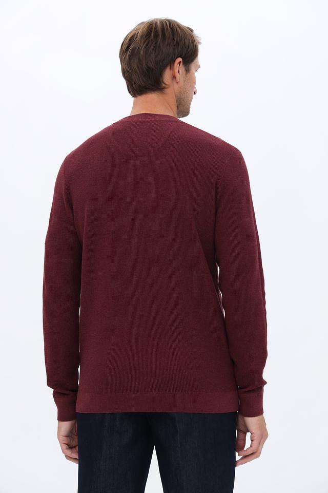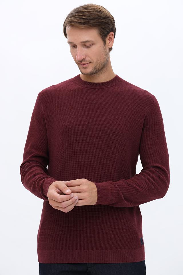 Мужской джемпер Tom Tailor бордового цвета выполнен из 100% хлопка и имеет текстурную вязку. Классический крой и круглый вырез делают его универсальным элементом гардероба. Состав: хлопок 100%