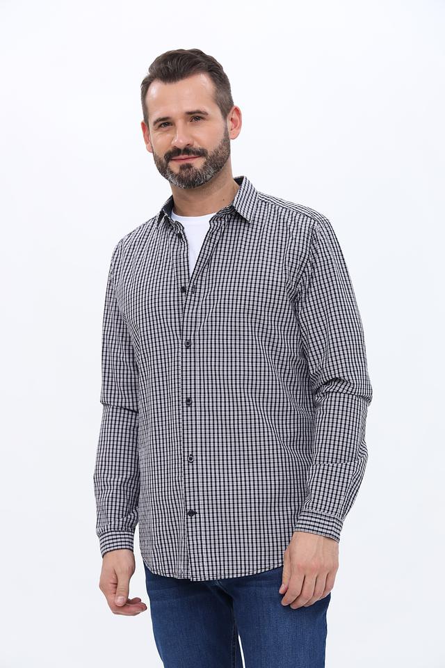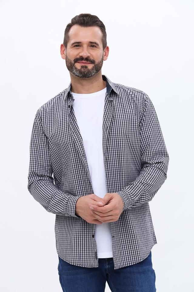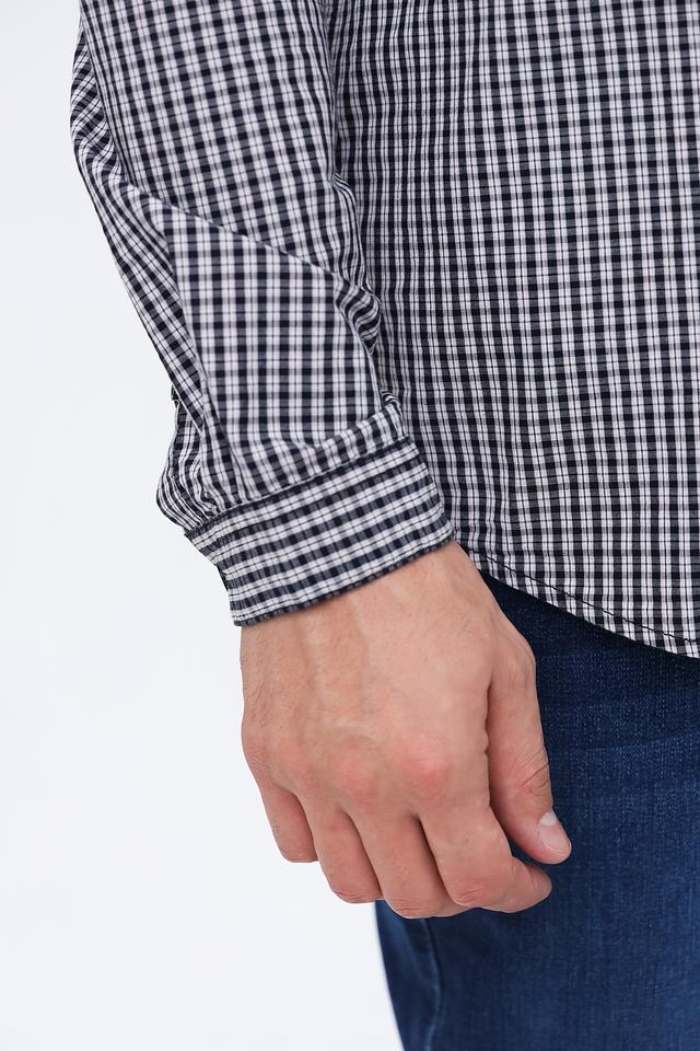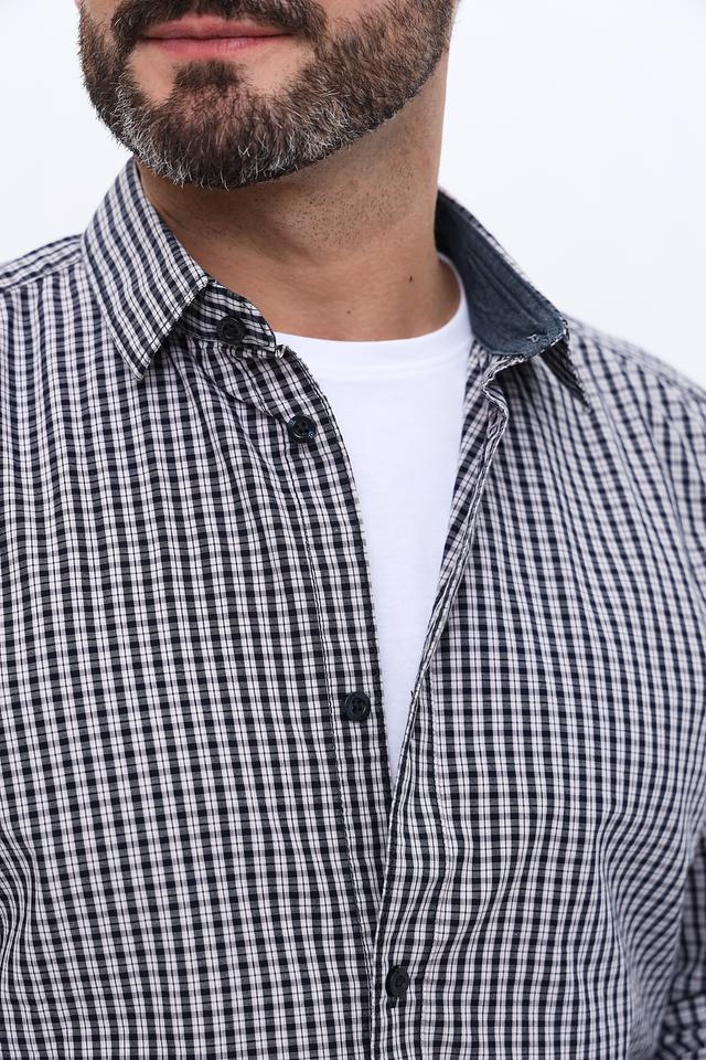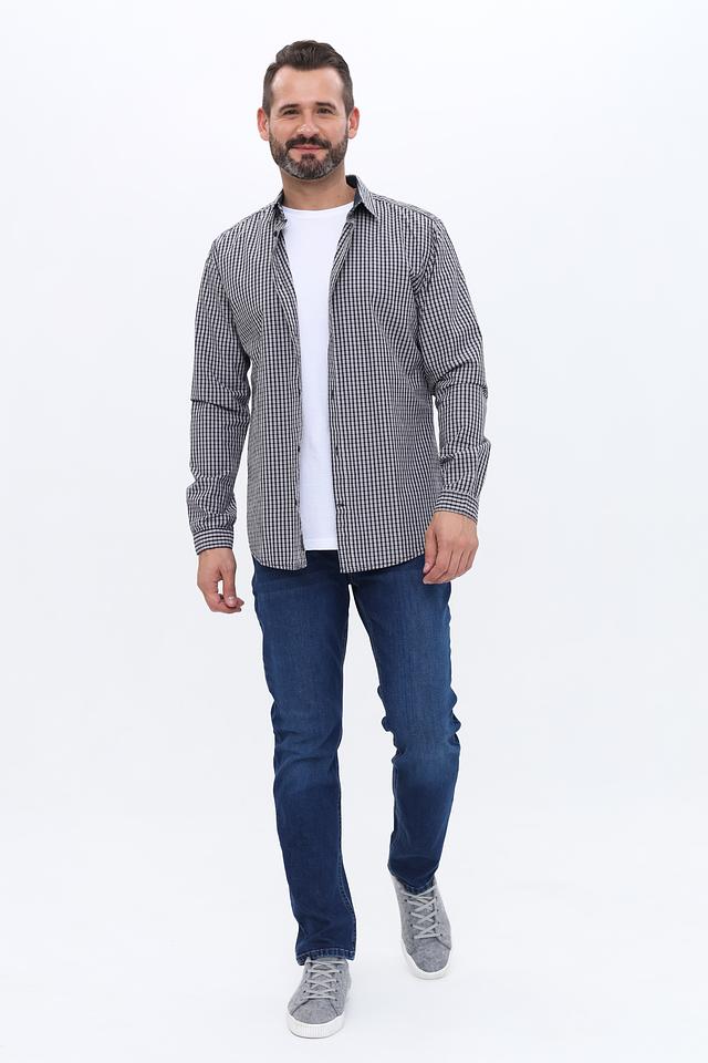 Основной цвет рубашки – чёрный, дополненный белой клеткой, что придает ей универсальность и позволяет легко сочетать с различными элементами гардероба. Рубашка изготовлена из 100% хлопка, что обеспечивает приятные тактильные ощущения и комфорт при носке.