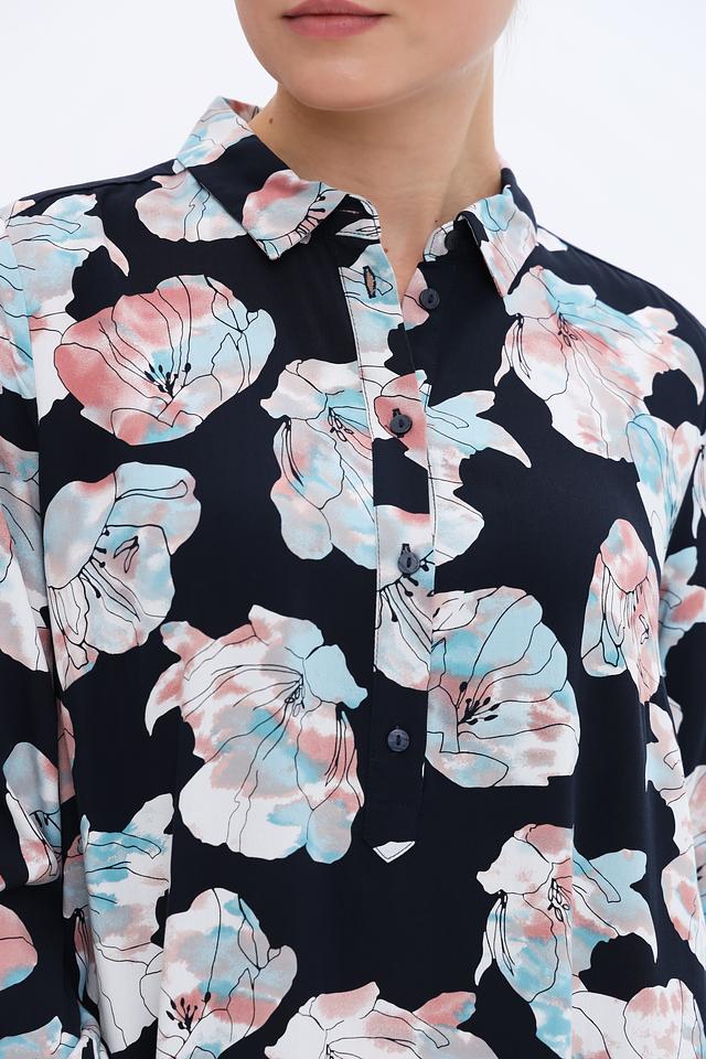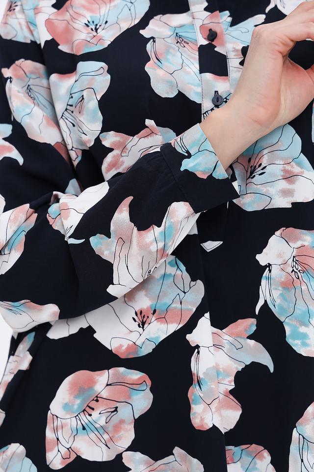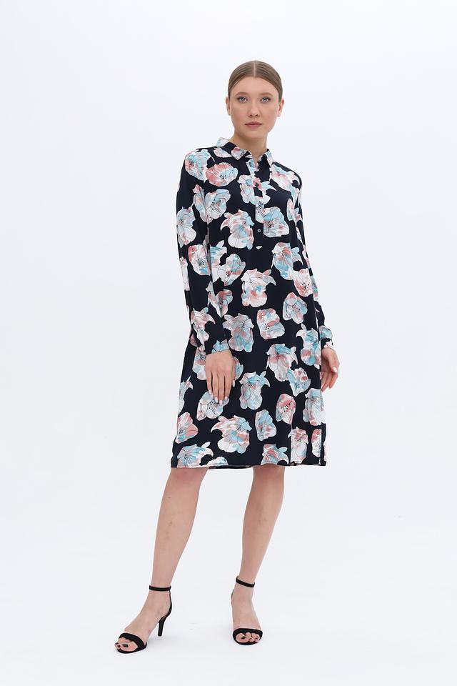 Это стильное платье от бренда Tom Tailor станет прекрасным дополнением к вашему гардеробу. Платье выполнено в темно-синем цвете и украшено изысканным цветочным принтом, выполненным в нежных оттенках розового и голубого.