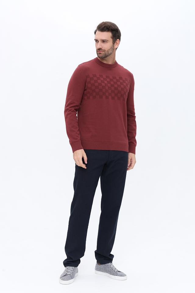 Мужской джемпер Tom Tailor бордового цвета с геометрическим узором. Изготовлен из 100% хлопка, обеспечивающего комфорт и воздухопроницаемость. Стильный и удобный выбор для повседневного гардероба. Состав: хлопок 100%