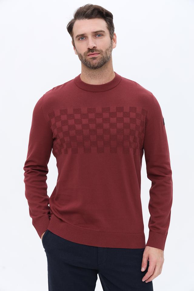 Представляем вашему вниманию мужской джемпер от бренда Tom Tailor. Эта модель выполнена в насыщенном бордовом цвете и отличается стильным геометрическим узором, который придает ей особый шарм.