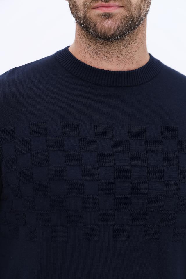 Представляем вашему вниманию стильный мужской джемпер от бренда Tom Tailor. Эта модель выполнена в насыщенном синем цвете и отличается оригинальным геометрическим узором, который придает ей особый шарм.