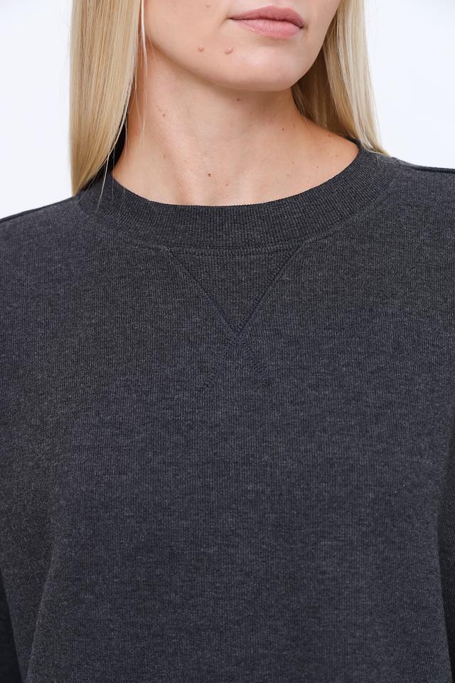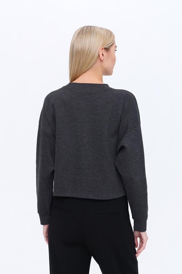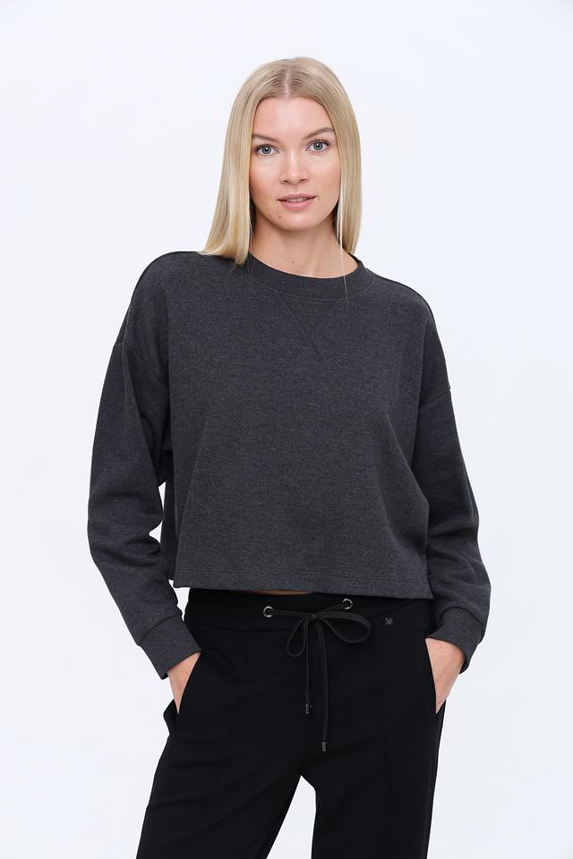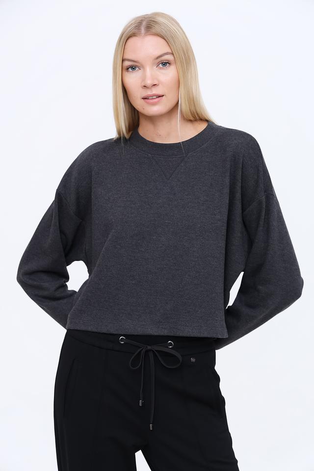 Пуловер имеет круглый вырез горловины и длинные рукава. Укороченная длина делает его актуальным и стильным. Изготовлен из мягкого трикотажа, состоящего из 60% хлопка и 40% полиэстера, что обеспечивает приятные тактильные ощущения и практичность в уходе.