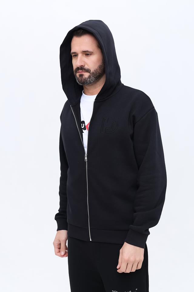 Кардиган имеет удобную застёжку-молнию, позволяющую регулировать степень тепла. На груди расположен логотип бренда, выполненный в тон изделия, что придает ему лаконичный и стильный вид.