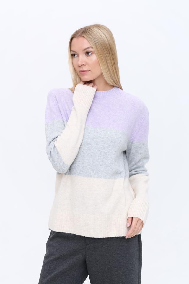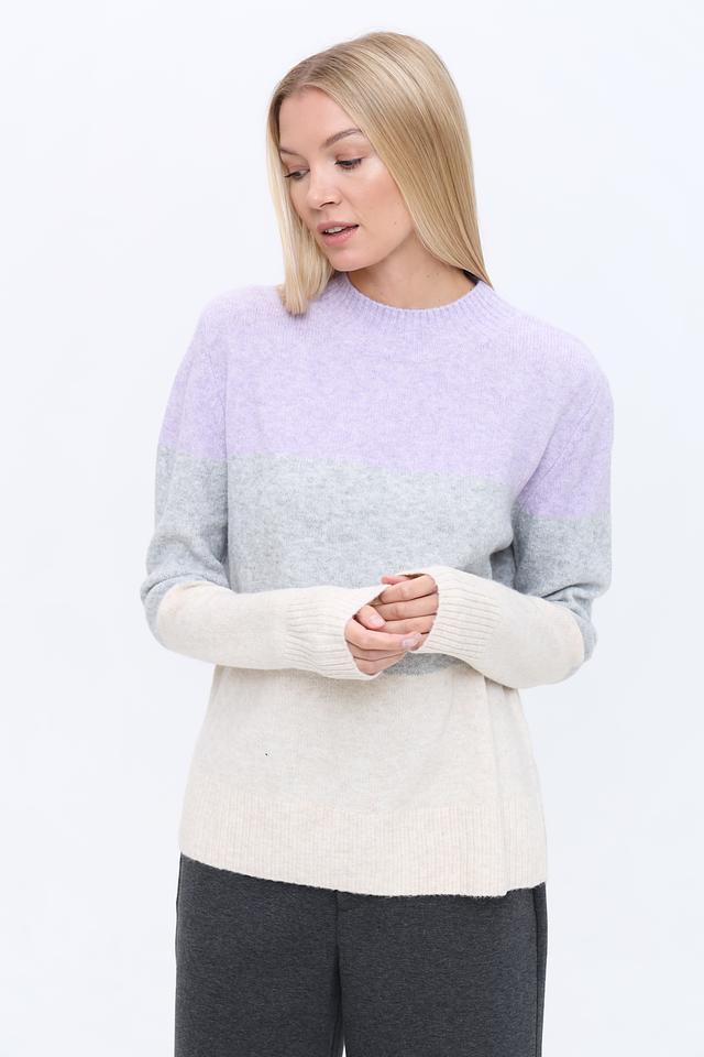 Женский пуловер Tom Tailor denim лавандового, серого и кремового цветов выполнен в блочном дизайне. Модель имеет круглый вырез и длинные рукава, идеально подходит для создания повседневных образов. Состав: полиакрил 62%, полиэстер 25%, хлопок 10%, эластан 3%