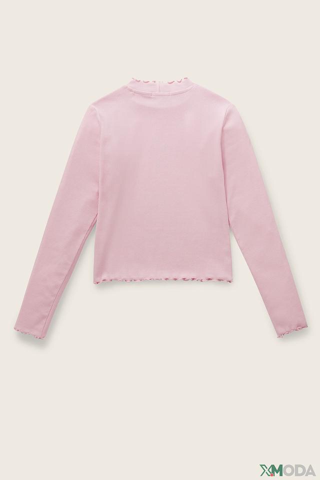 Розовый джемпер от Tom Tailor для девочки, выполнен из мягкого трикотажа с рюшами на горловине и по низу изделия. Удобный и стильный вариант для повседневной носки. Состав: хлопок 93%, эластан 7%