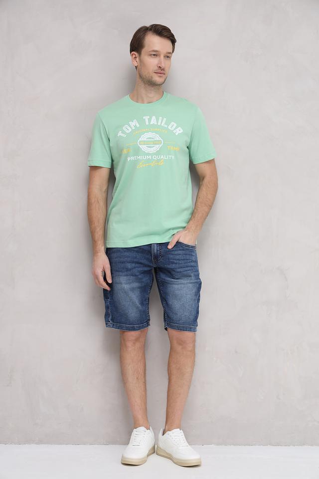 Мужская футболка Tom Tailor мятного цвета с оригинальным принтом на груди. Изготовлена из 100% хлопка, обеспечивающего комфорт и воздухопроницаемость. Стильный и удобный выбор для повседневной носки. Состав: хлопок 100%