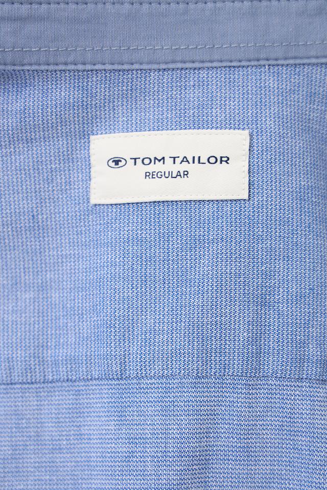 На левой стороне груди расположена небольшая фирменная деталь бренда Tom Tailor. Рукава рубашки имеют манжеты на пуговицах, что позволяет регулировать их длину.