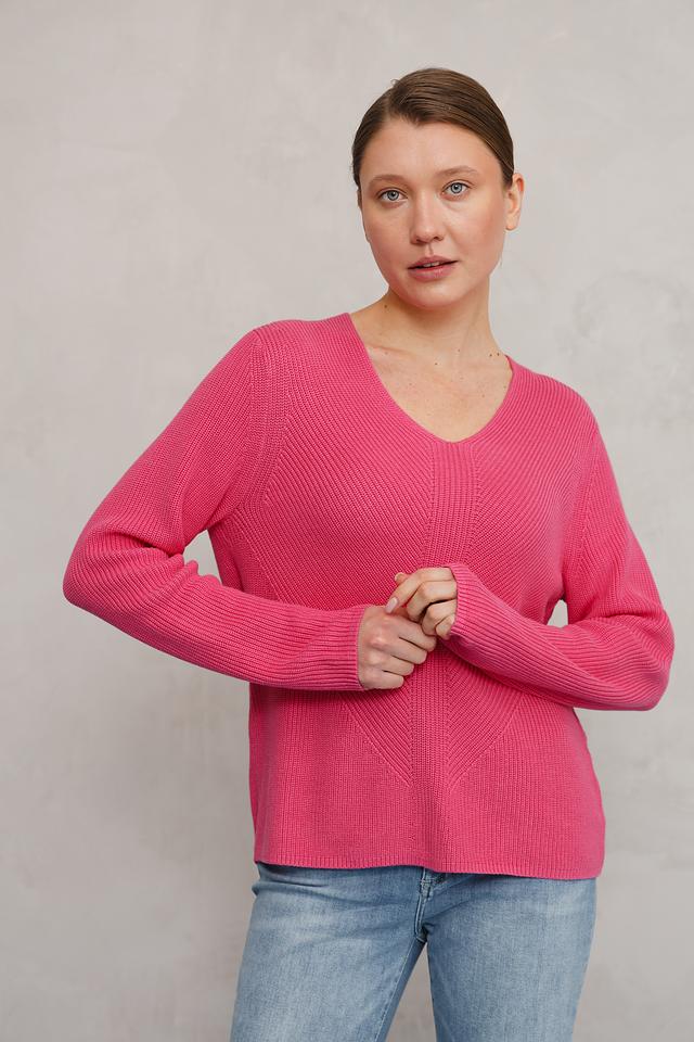 Пуловер Tom Tailor малиновый с V-образным вырезом