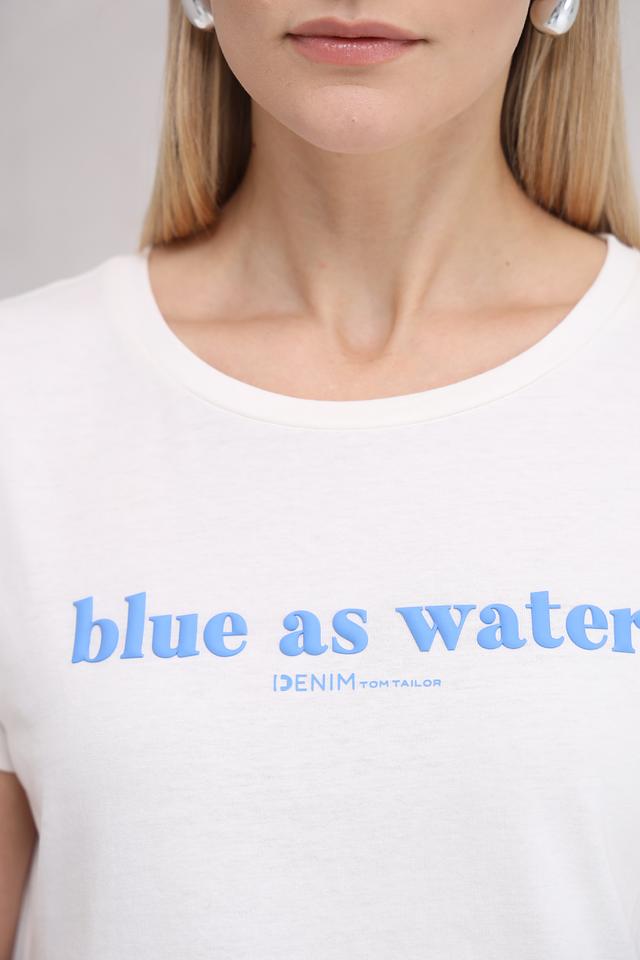 Белая футболка Tom Tailor denim с принтом "blue as water" — стильная и комфортная модель из 100% хлопка. Классический крой и лаконичный дизайн делают эту футболку универсальным элементом гардероба. Состав: хлопок 100%