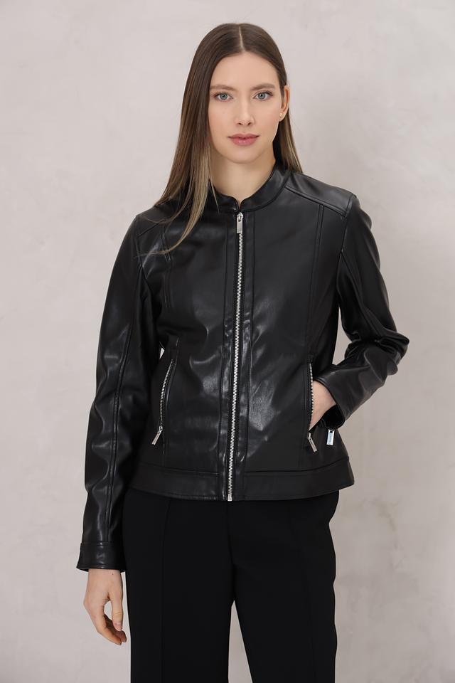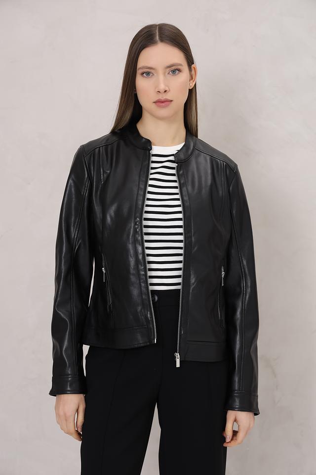 Этот жакет от Tom Tailor выполнен из высококачественного полиуретана, имитирующего кожу. Классический чёрный цвет делает его универсальным элементом гардероба, который легко сочетается с различными стилями одежды.