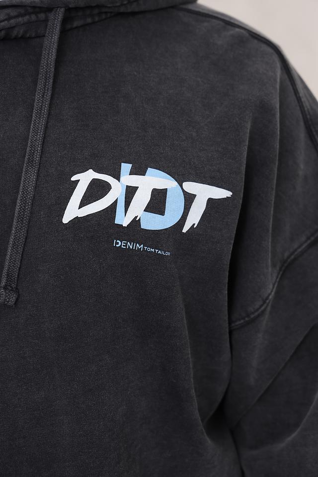 Чёрная толстовка от Tom Tailor denim – это стильный и комфортный выбор для повседневной носки. Модель выполнена в технике washed denim, имеет свободный крой и оригинальный принт спереди и сзади. Состав: хлопок 100%