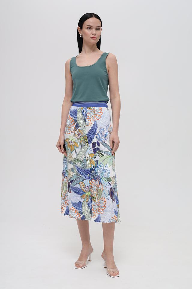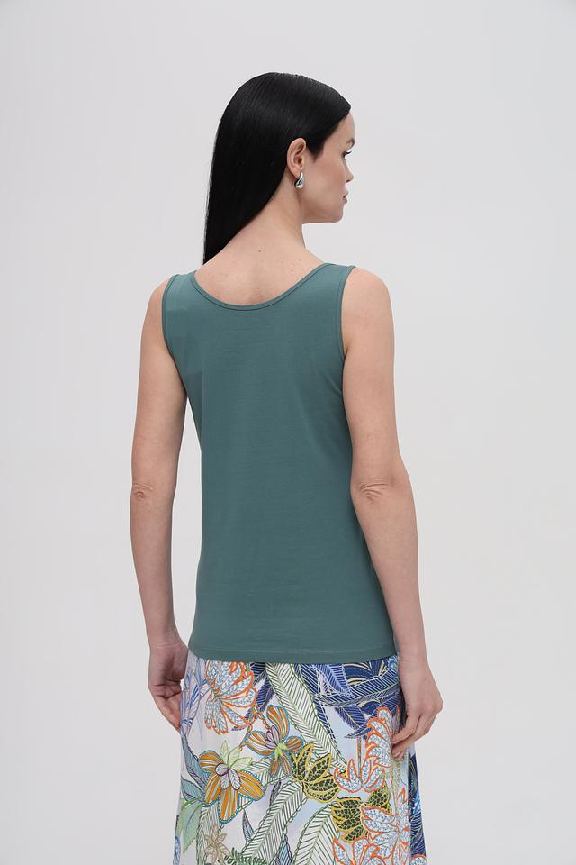 Топ имеет классический крой с округлым вырезом горловины и широкими бретелями. Благодаря составу – 95% хлопок и 5% эластан – изделие приятно к телу, хорошо держит форму и не сковывает движения.