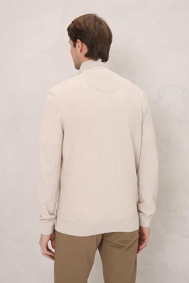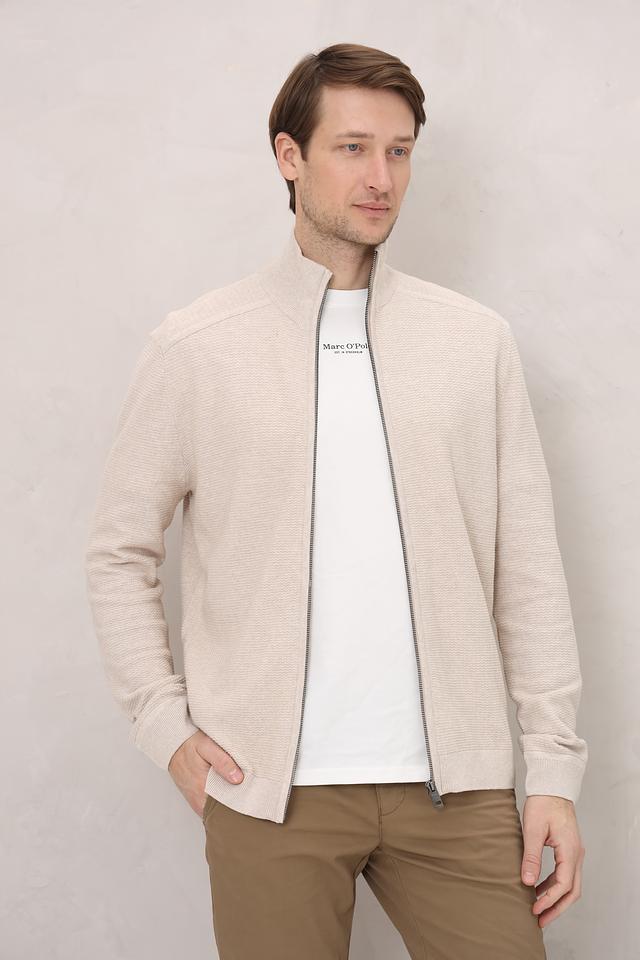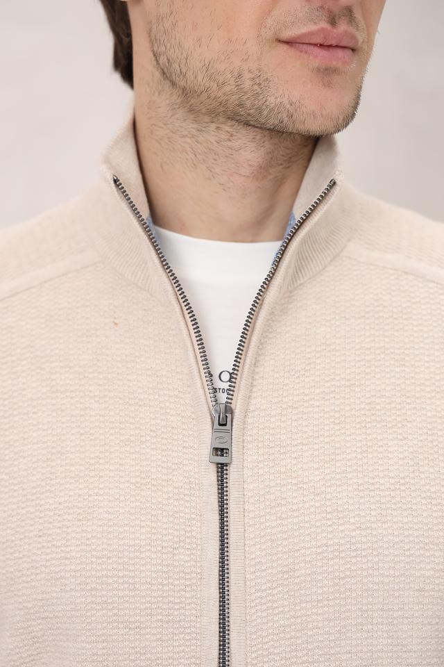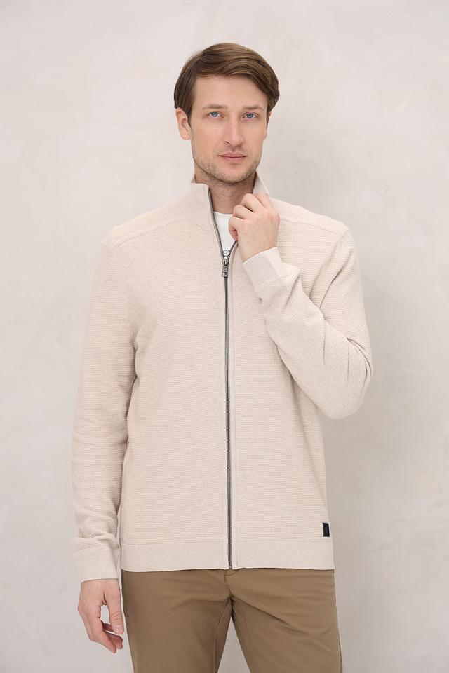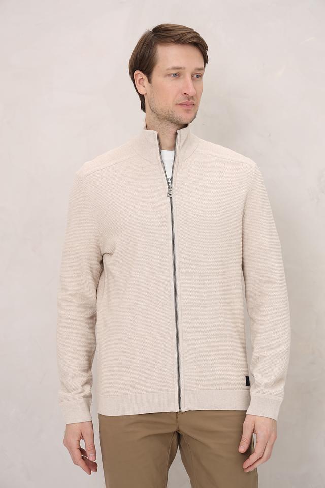 Кардиган имеет бежевый цвет и фактурную вязку, которая придает ему стильный и современный вид. Застежка на молнии позволяет легко регулировать степень тепла и создавать различные образы.