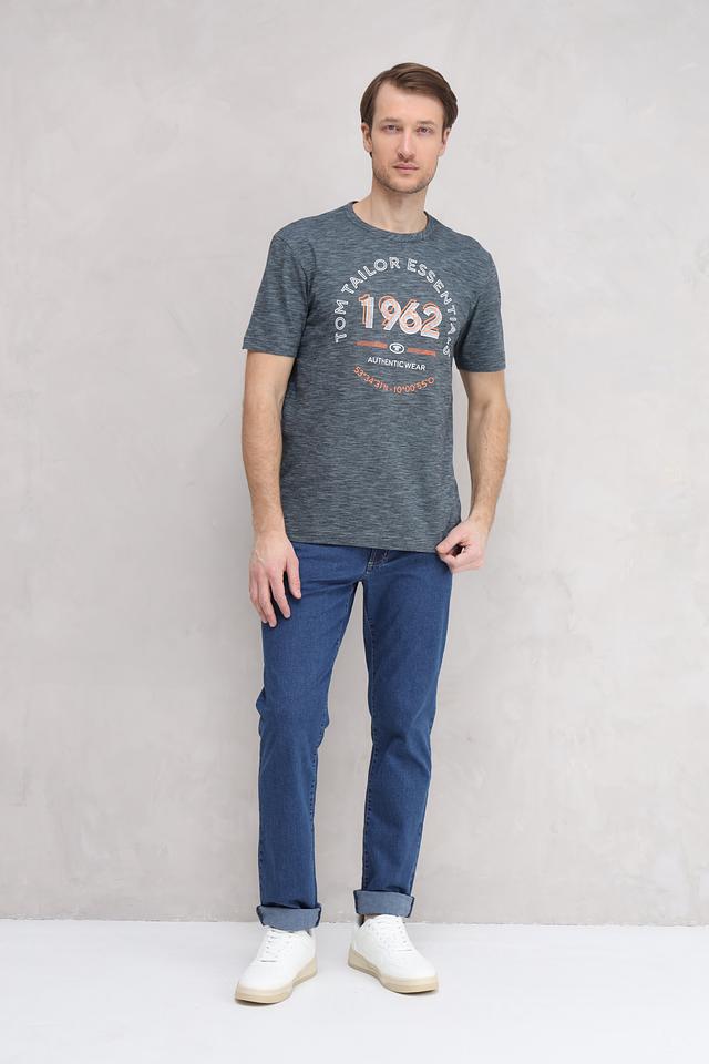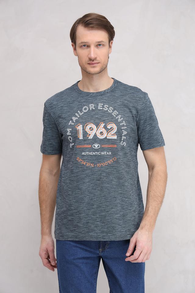 Мужская футболка Tom Tailor Essentials серого меланжевого цвета с круглым вырезом и оригинальным принтом на груди. Изготовлена из 100% хлопка, обеспечивающего комфорт и воздухопроницаемость. Состав: хлопок 100%