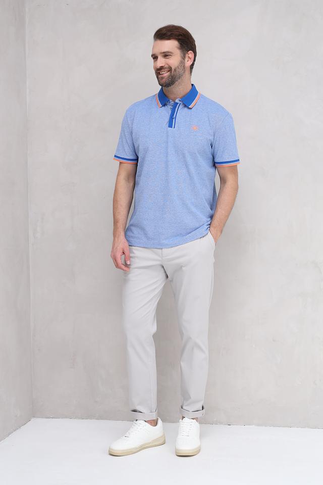 Мужское поло от Tom Tailor голубого цвета с контрастной отделкой воротника и планки. Изготовлено из мягкого хлопка с добавлением эластана для комфорта и свободы движений. Состав: хлопок 98%, эластан 2%