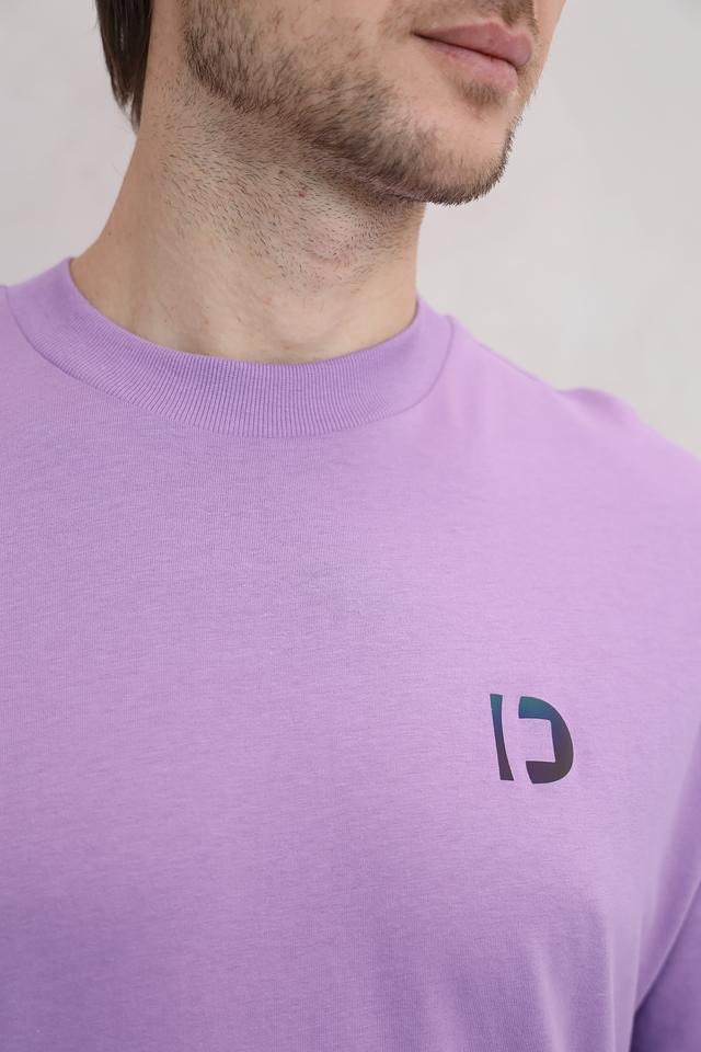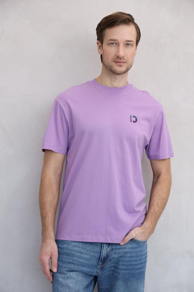 Футболка имеет классический прямой крой, который подходит для любого типа фигуры. Короткие рукава и круглый вырез горловины делают ее идеальным выбором для теплой погоды. Лавандовый цвет придает образу свежесть и оригинальность.