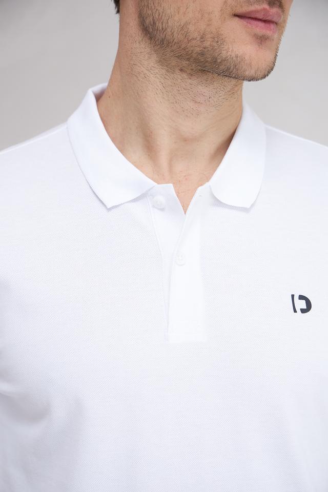 Данная модель выполнена в классическом белом цвете, который легко сочетается с различными элементами гардероба. Прямой крой обеспечивает свободу движений, а короткие рукава делают поло идеальным выбором для теплой погоды.
