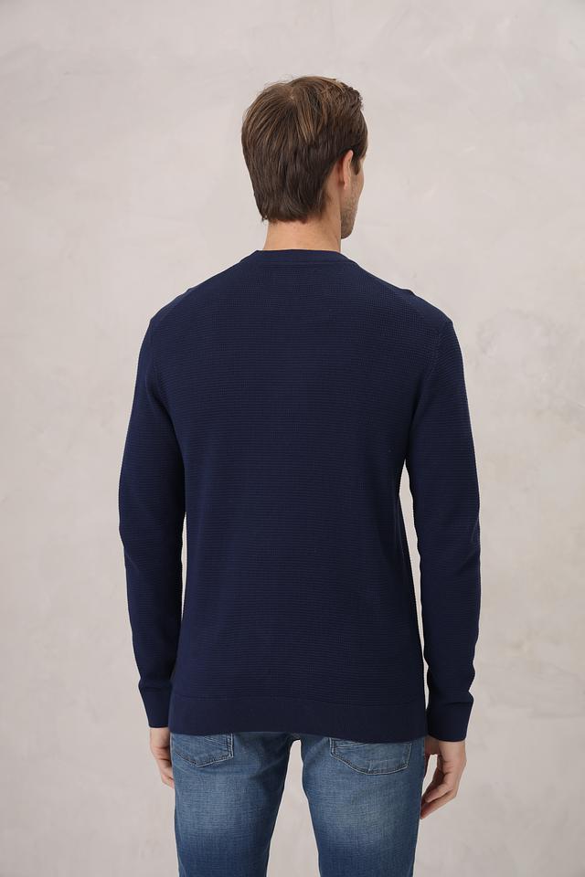 Джемпер имеет прямой крой, круглый вырез горловины и длинные рукава. Текстурная вязка придает изделию интересный вид и делает его более выразительным. Материал – 100% хлопок, что обеспечивает комфорт и удобство при носке, а также позволяет коже дышать.