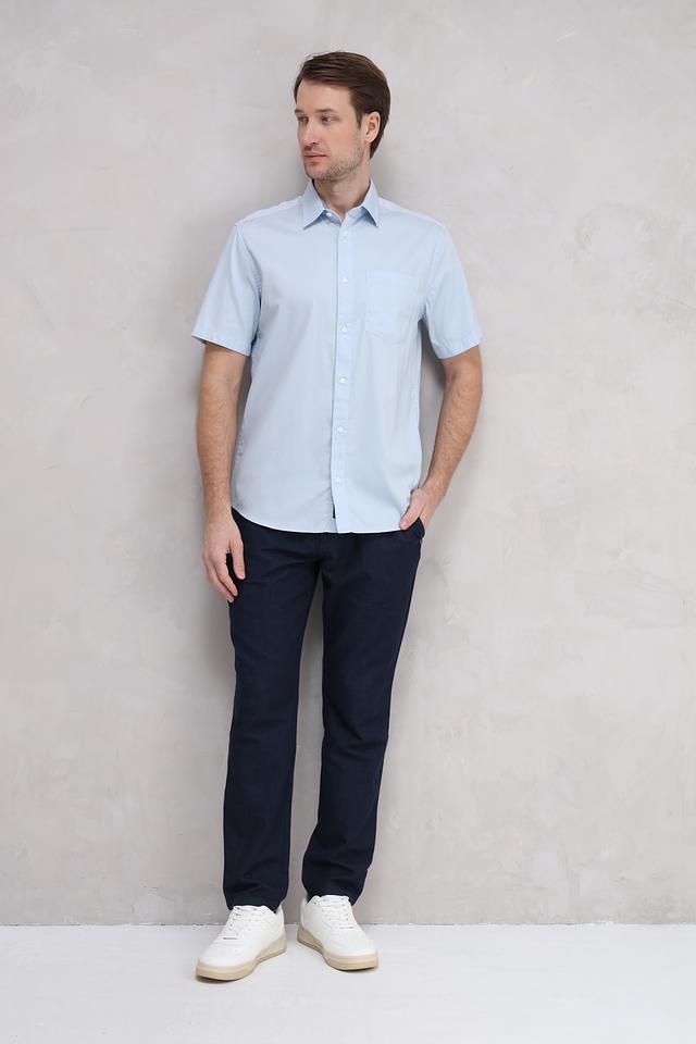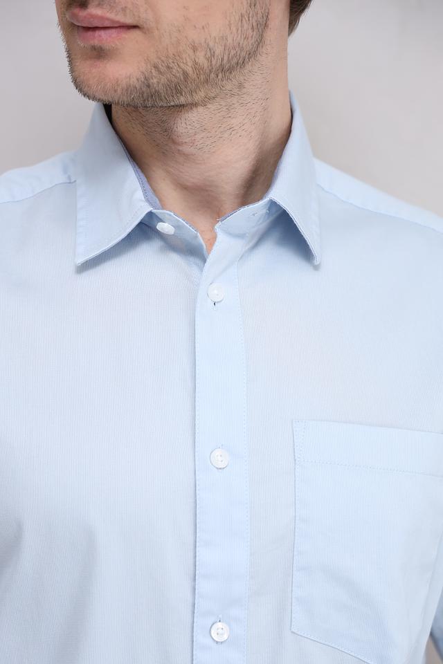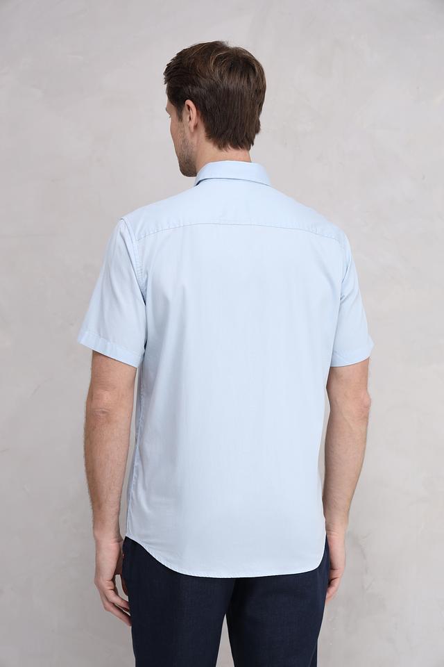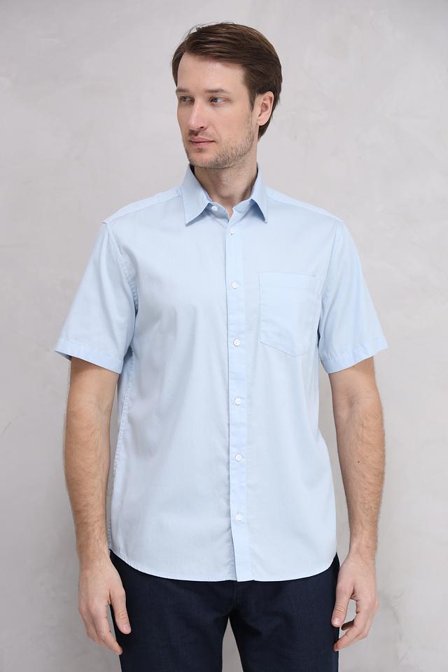 Рубашка имеет классический крой, который подходит для различных типов фигур. Голубой цвет придает ей свежий и современный вид. На груди расположен накладной карман, добавляющий функциональности и стиля.