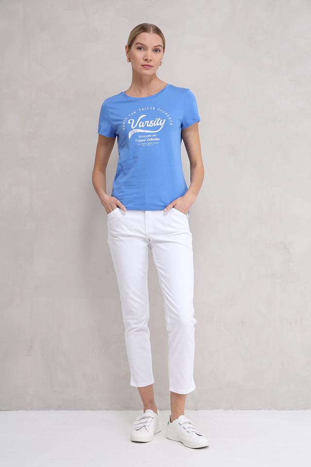 Женская футболка Tom Tailor голубого цвета с принтом Varsity — это стильная и комфортная модель из 100% хлопка. Футболка имеет круглый вырез горловины и короткие рукава, идеально подходит для повседневной носки. Состав: хлопок 100%