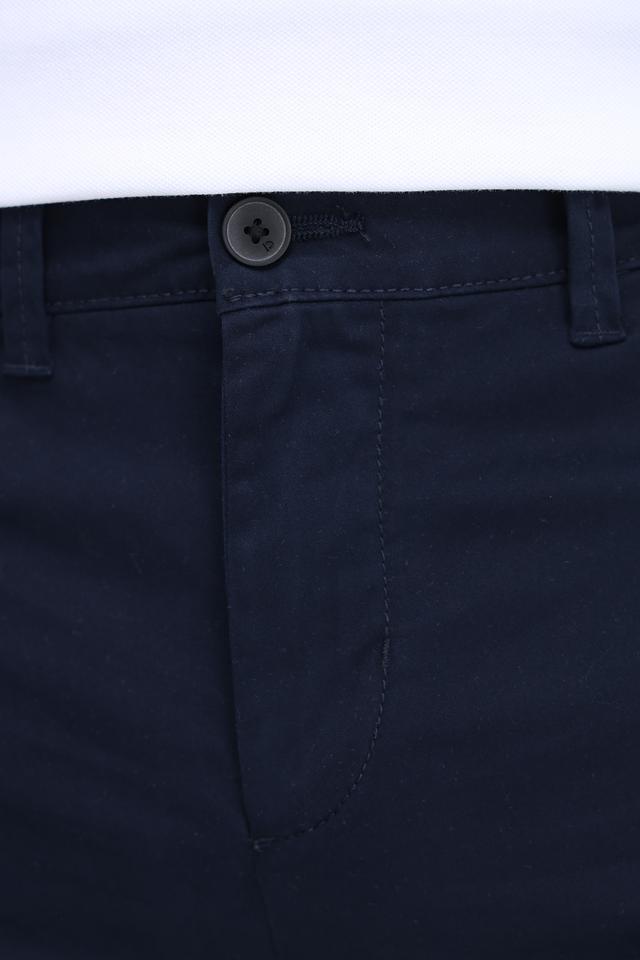 Шорты имеют стандартную длину и застегиваются на молнию и пуговицу. Модель оснащена двумя боковыми карманами и двумя задними карманами с клапанами. Цвет шорт – насыщенный тёмно-синий (navy), который легко сочетается с различными элементами гардероба.