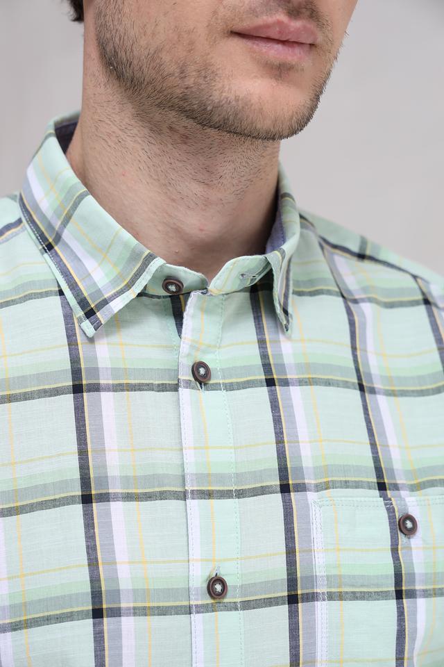 Мужская рубашка Tom Tailor светло-зелёного цвета в классическую клетку. Изготовлена из 100% хлопка, обеспечивающего комфорт и воздухопроницаемость. Отличный выбор для создания повседневного образа. Состав: хлопок 100%