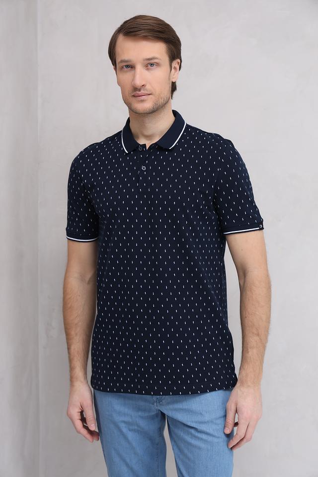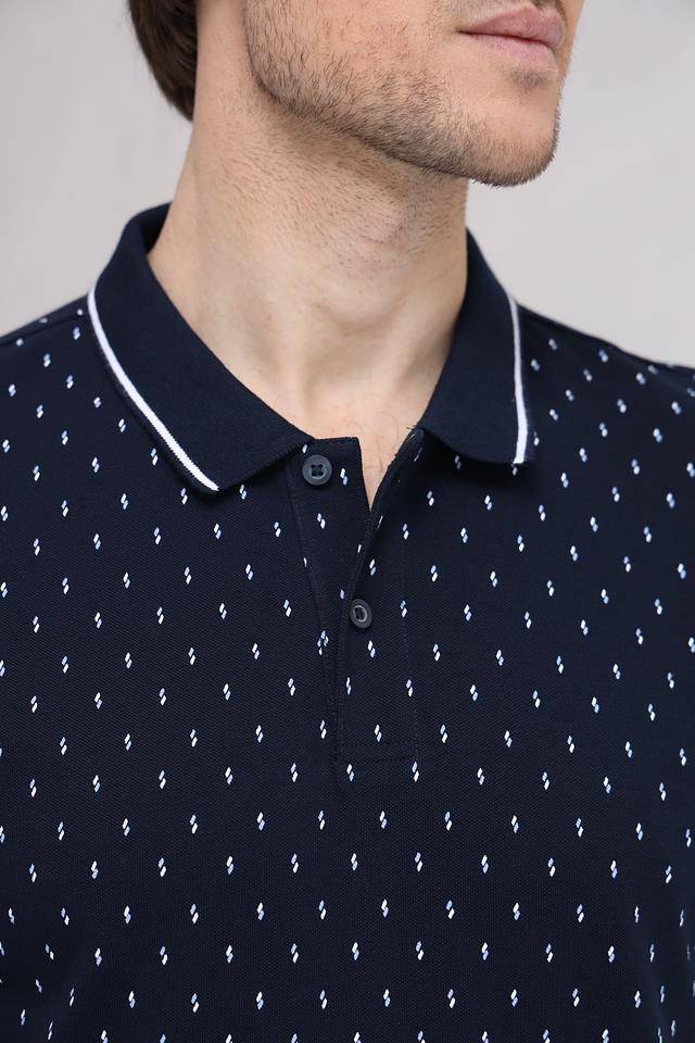 Мужское поло Tom Tailor denim тёмно-синего цвета с мелким белым рисунком. Классический крой и воротник с белой окантовкой делают эту модель универсальной для повседневного образа. Состав: хлопок 100%