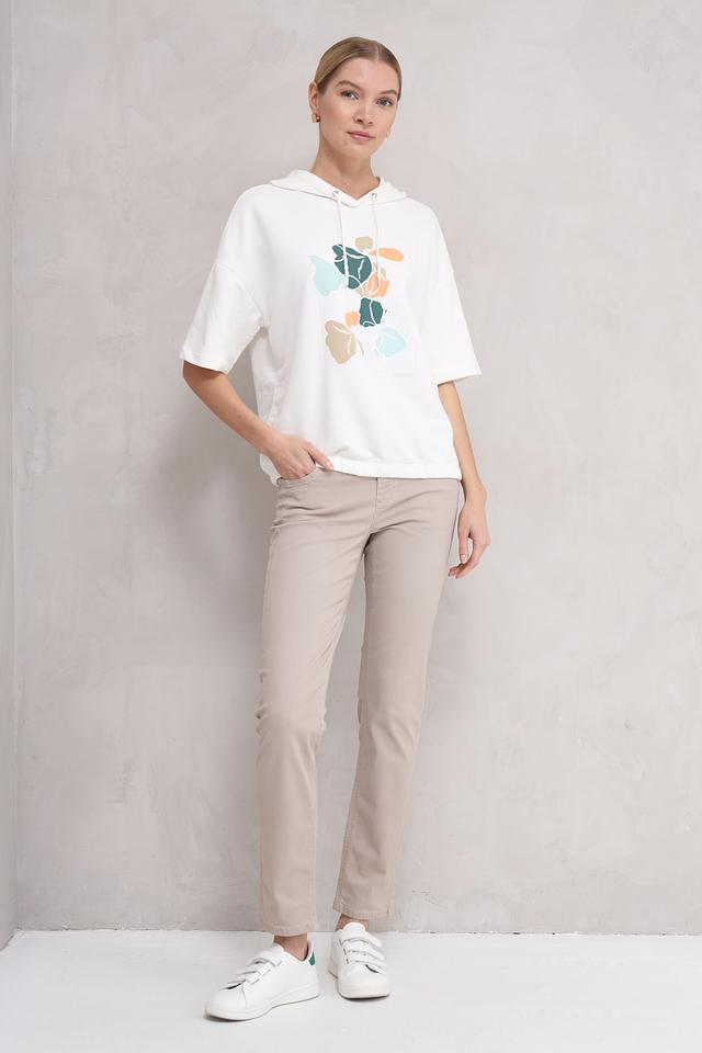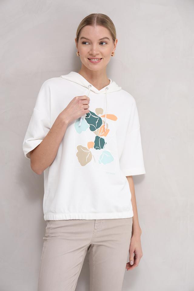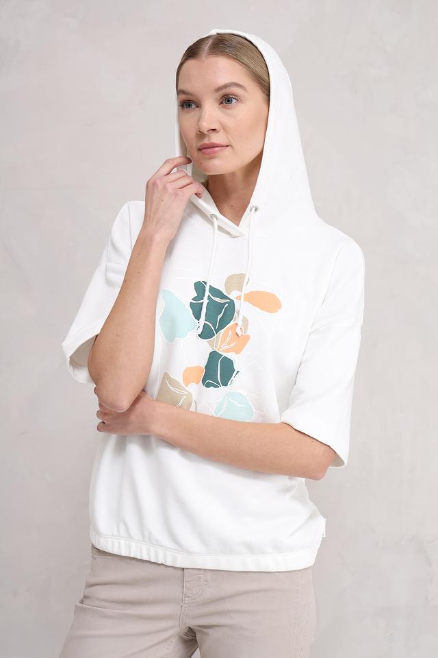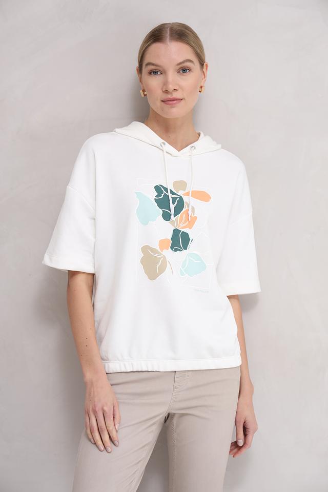 Белый пуловер от Tom Tailor с коротким рукавом и ярким цветочным принтом. Модель выполнена из мягкого хлопка с добавлением полиэстера, что обеспечивает комфорт и удобство в носке. Состав: хлопок 60%, полиэстер 40%