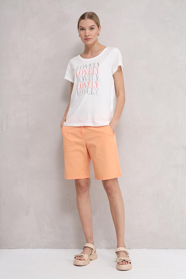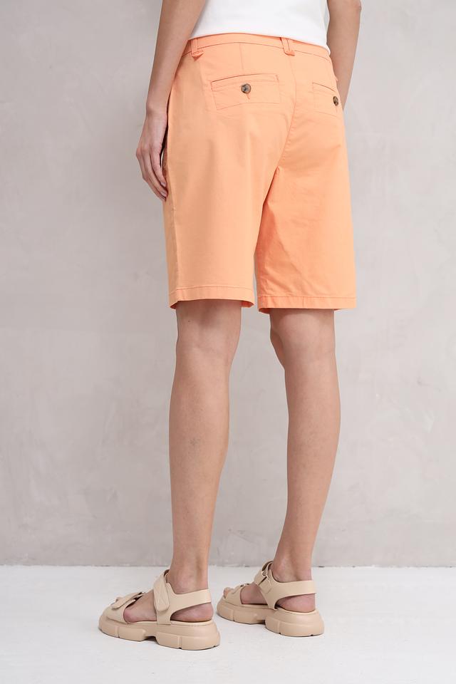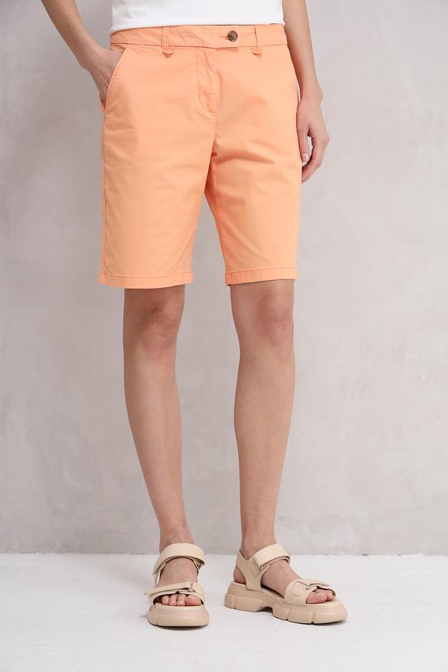 Персиковый цвет шорт придаёт им свежий и летний вид. Они прекрасно сочетаются с различными топами, футболками и блузками, позволяя создавать разнообразные образы для повседневной носки. Состав ткани: 86% хлопок, 11% эластомультиэстер, 3% эластан.