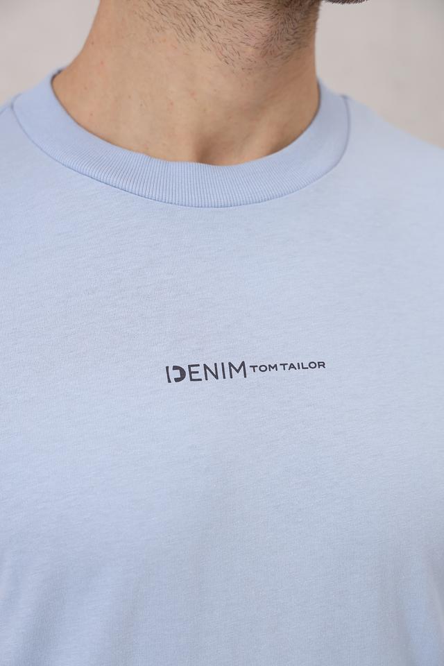 Футболка имеет классический прямой крой, который подходит для любого типа фигуры. Круглый вырез горловины и короткие рукава обеспечивают свободу движений. На груди расположена небольшая надпись "DENIM TOM TAILOR", добавляющая футболке индивидуальности.