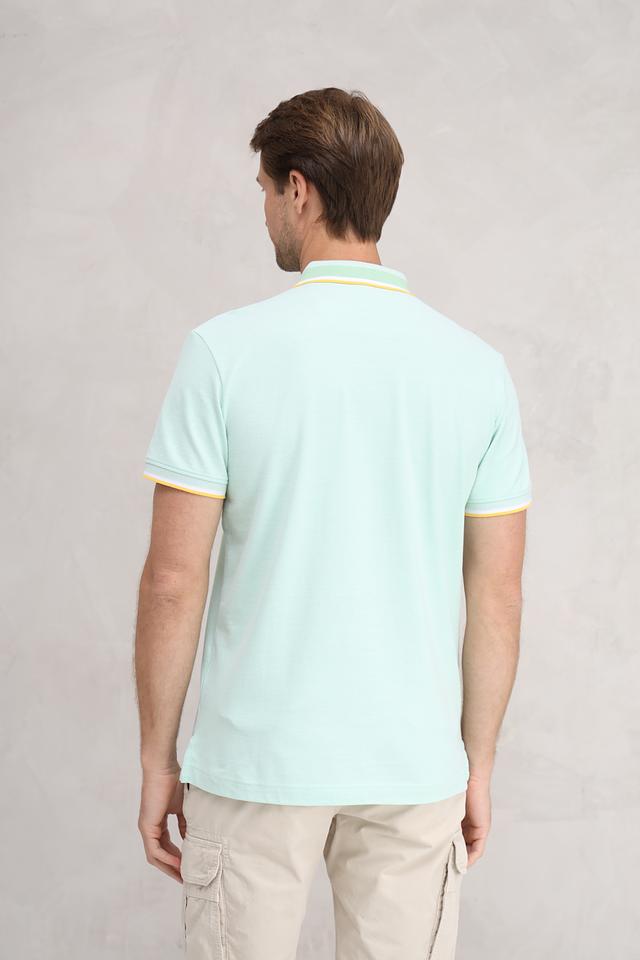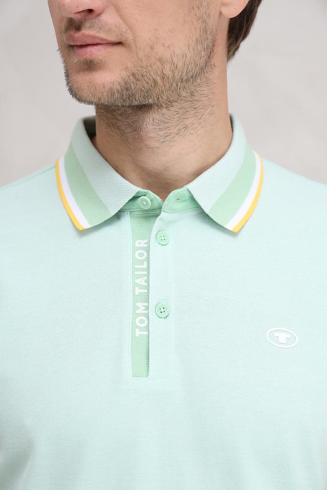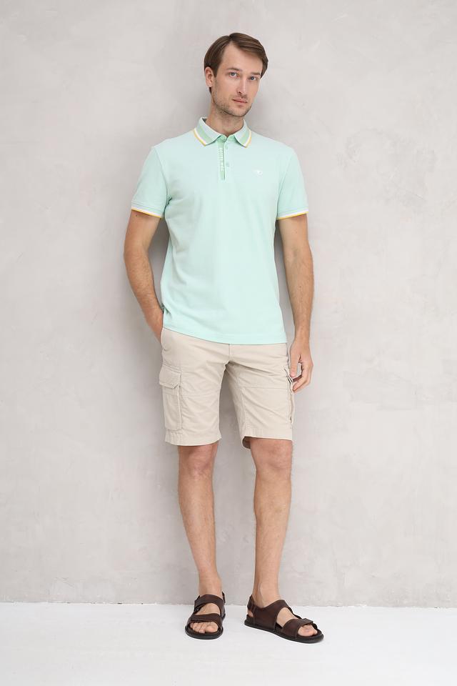 Мужское поло от Tom Tailor выполнено в нежном мятном цвете и станет отличным дополнением к вашему летнему гардеробу. Модель имеет классический крой, короткие рукава и воротник-поло с контрастной окантовкой желтого и белого цветов.