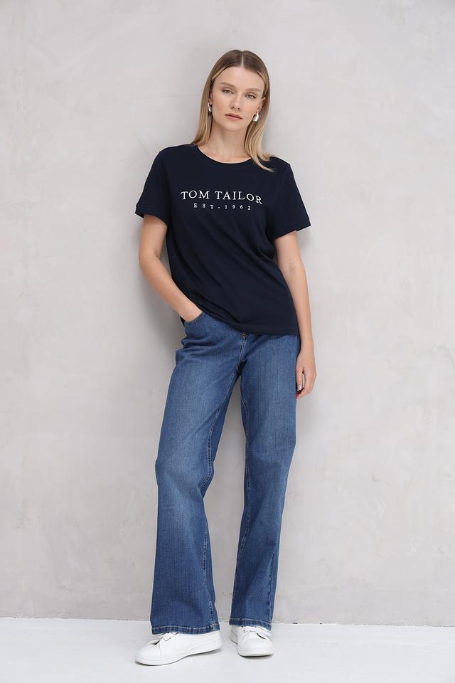 Женская футболка Tom Tailor темно-синего цвета с белым логотипом бренда на передней части. Изготовлена из 100% хлопка, обеспечивающего комфорт и воздухопроницаемость. Состав: хлопок 100%