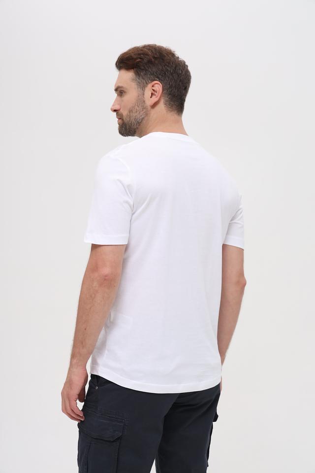 Футболка имеет классический прямой крой, который подходит для любого типа фигуры. Короткий рукав и круглый вырез горловины делают ее универсальной и подходящей для различных ситуаций.