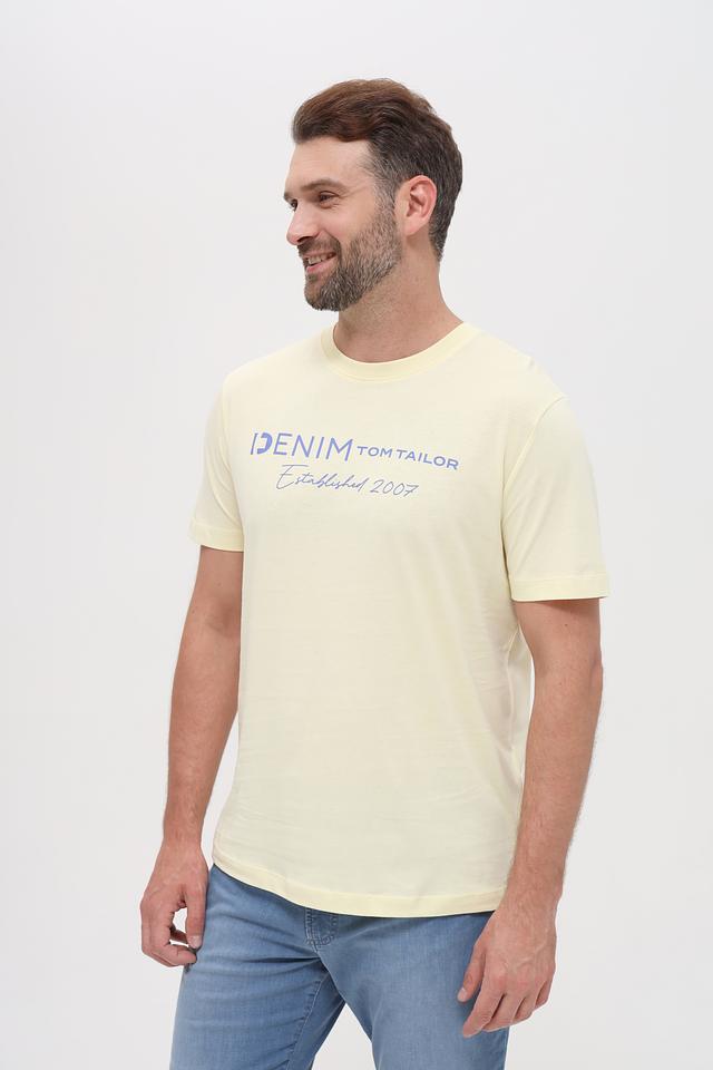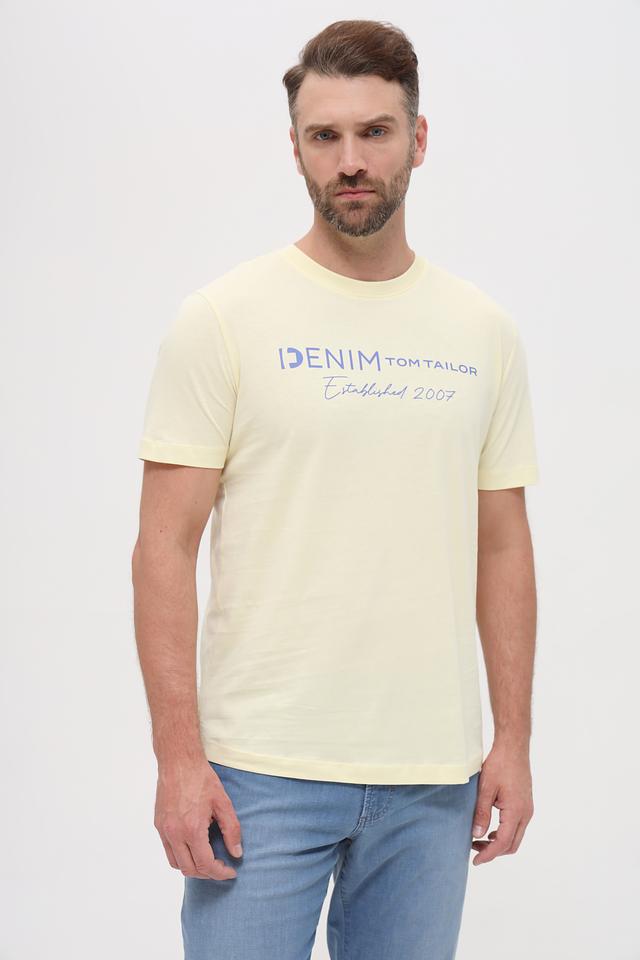 Стильная мужская футболка Tom Tailor denim светло-жёлтого цвета с принтом на груди. Изготовлена из 100% хлопка, обеспечивающего комфорт и воздухопроницаемость. Идеальный выбор для повседневного образа. Состав: хлопок 100%