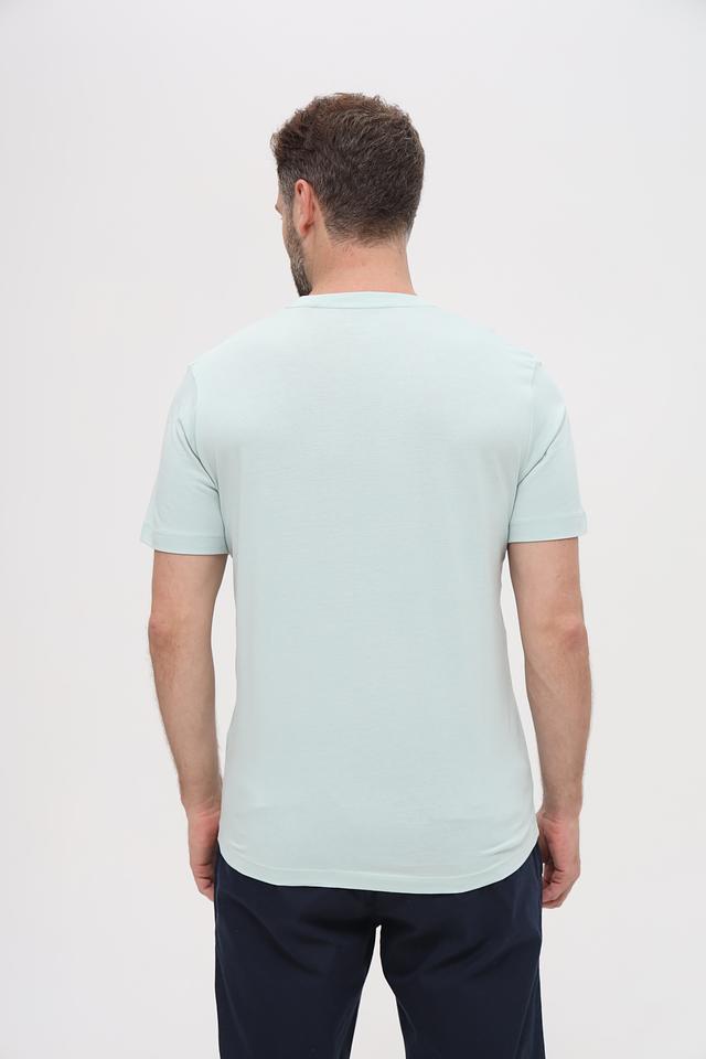 Футболка имеет классический прямой крой, который подходит для любого типа фигуры. Короткий рукав делает ее идеальной для теплой погоды. Цвет футболки – нежный мятный, который легко сочетается с другими элементами гардероба.
