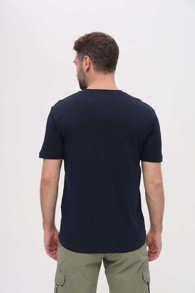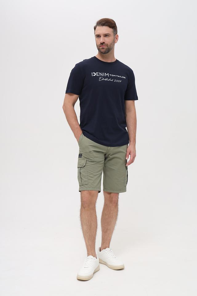 Мужская футболка Tom Tailor denim синего цвета с круглым вырезом и принтом на груди. Изготовлена из 100% хлопка, обеспечивающего комфорт и воздухопроницаемость. Стильный и универсальный вариант для повседневного образа. Состав: хлопок 100%