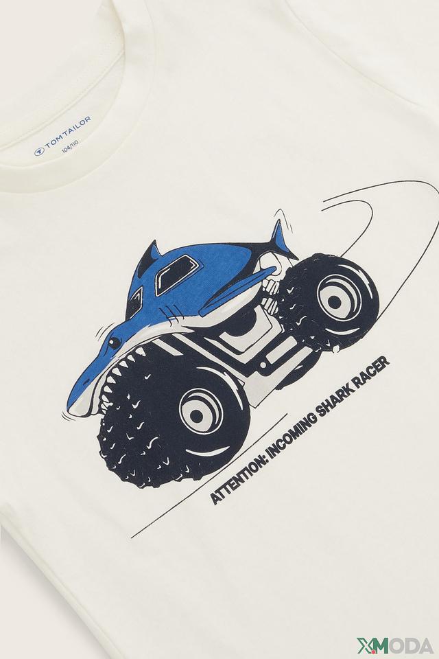 Белая футболка Tom Tailor для мальчика с ярким принтом в виде акулы-внедорожника. Изготовлена из 100% хлопка, обеспечивая комфорт и удобство в носке. Отличный выбор для активных ребят! Состав: хлопок 100%