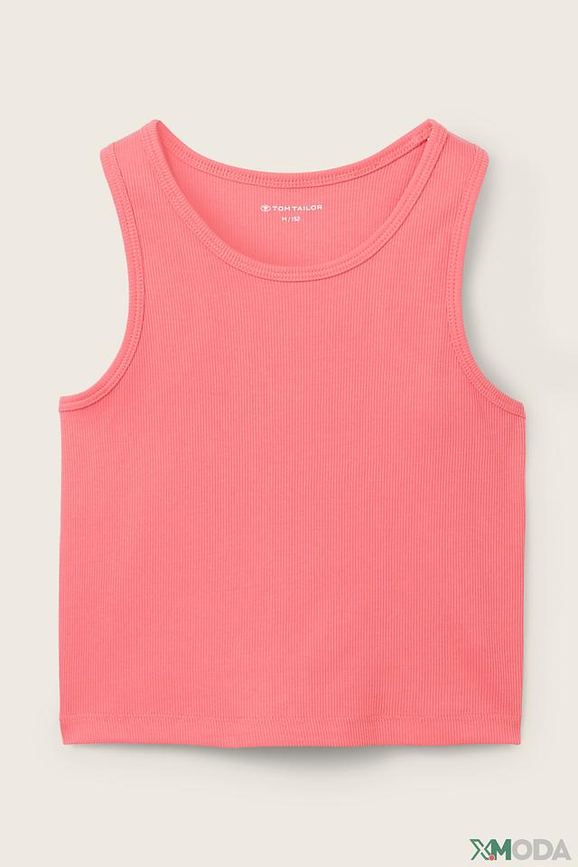 Футболка имеет классический крой без рукавов и круглый вырез горловины. Текстура ткани – в рубчик, что придает ей особый стиль и фактурность. Одежда легко сочетается с другими элементами гардероба, такими как джинсы, шорты или юбки.
