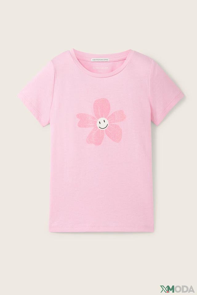 Розовая футболка Tom Tailor для девочки с ярким принтом в виде цветка. Изготовлена из 100% хлопка, обеспечивая комфорт и удобство в носке. Отличный выбор для повседневной носки и активных игр. Состав: хлопок 100%