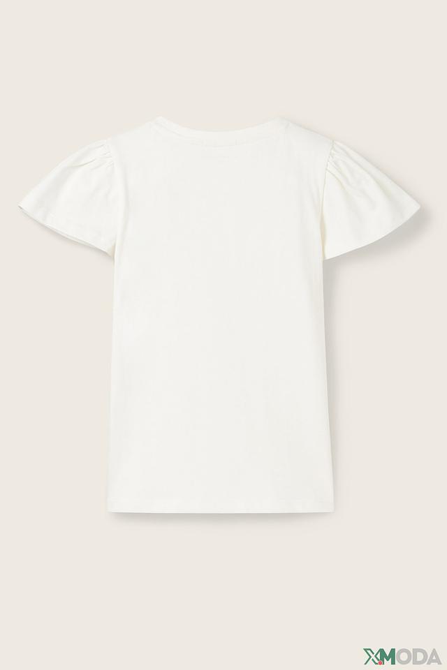 Белая футболка Tom Tailor для девочки, украшенная аппликациями в виде бабочек. Модель выполнена из мягкого хлопка и имеет рукава с воланами, что придает ей нежный и нарядный вид. Состав: хлопок 100%