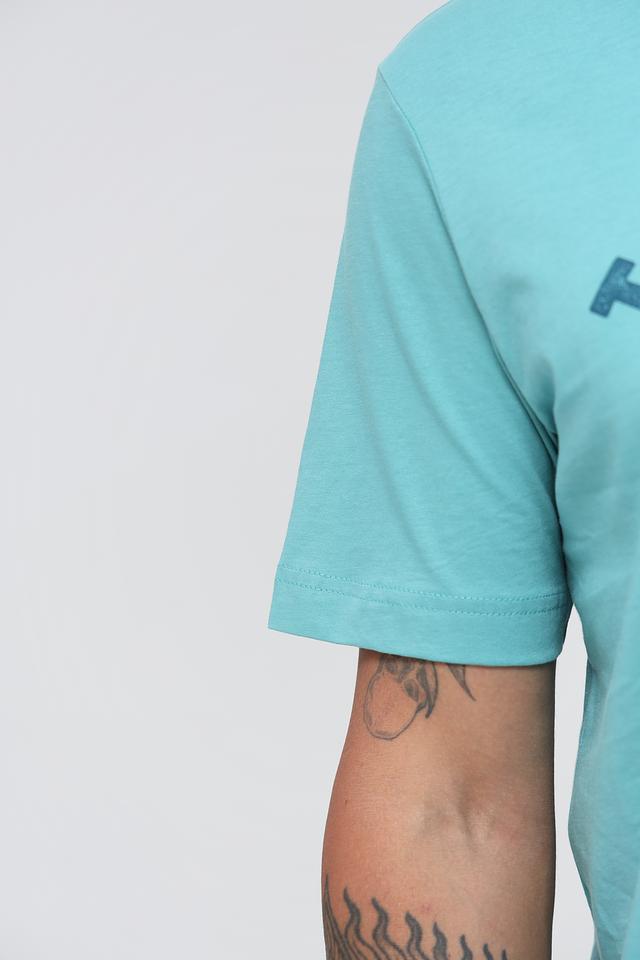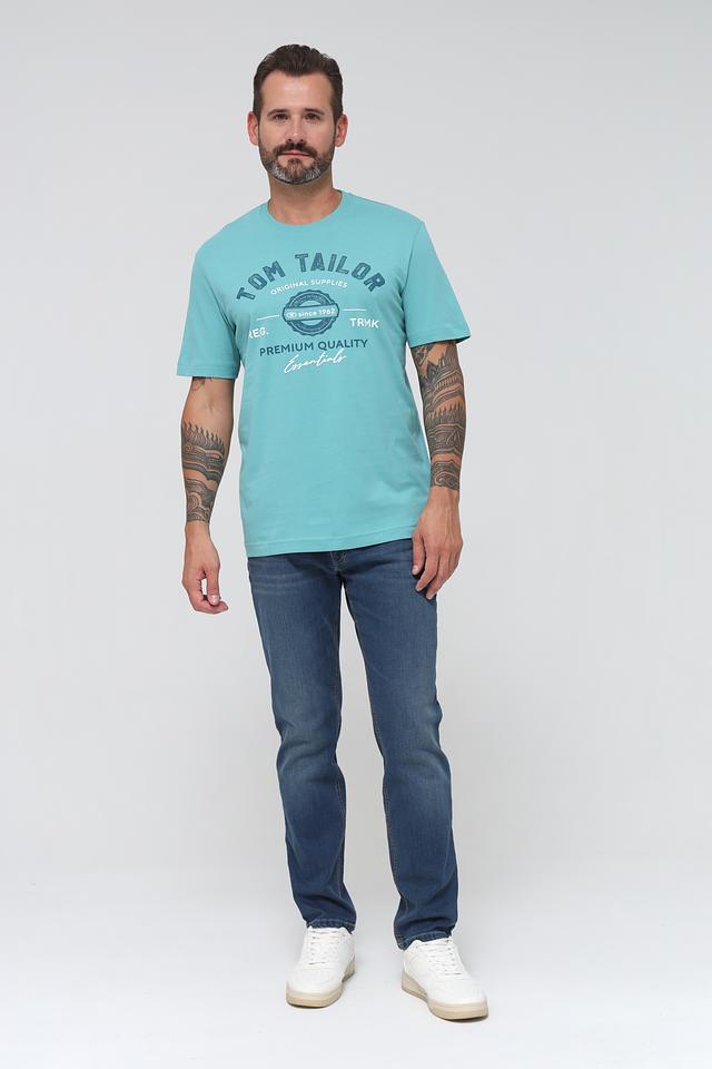 Мужская футболка Tom Tailor мятного цвета с оригинальным принтом на груди. Изготовлена из 100% хлопка, обеспечивающего комфорт и воздухопроницаемость. Отличный выбор для повседневного образа. Состав: хлопок 100%
