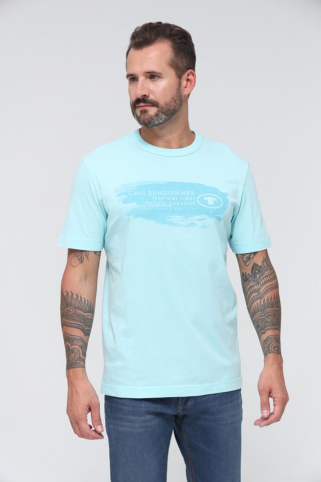 Голубая футболка Tom Tailor с принтом Cali Sundowner — это стильная и комфортная модель из 100% хлопка. Футболка имеет прямой крой и короткий рукав, идеально подходит для повседневной носки. Состав: хлопок 100%