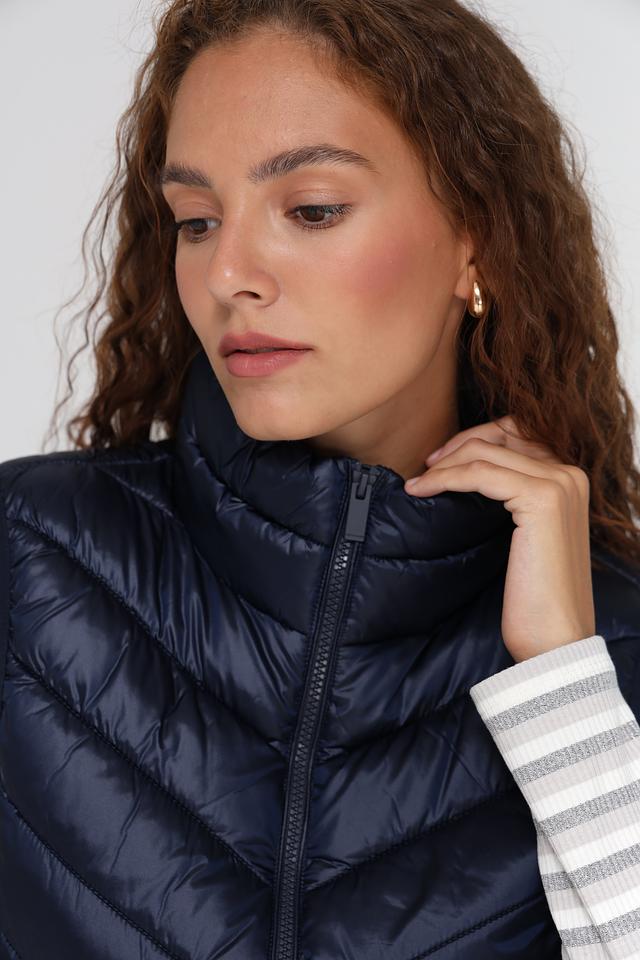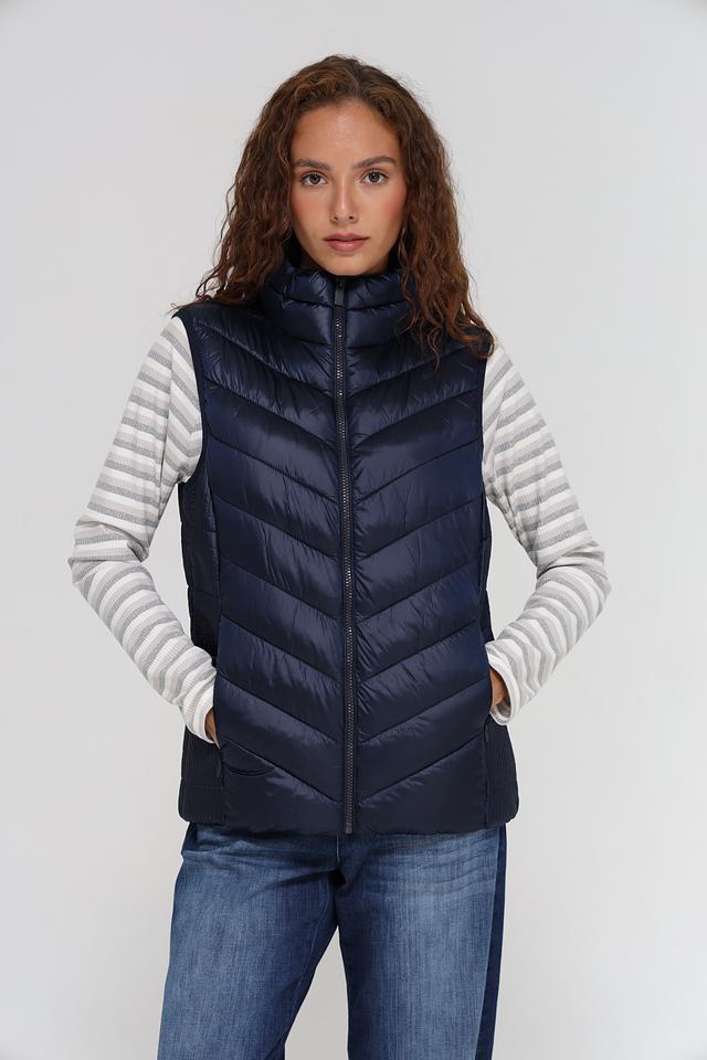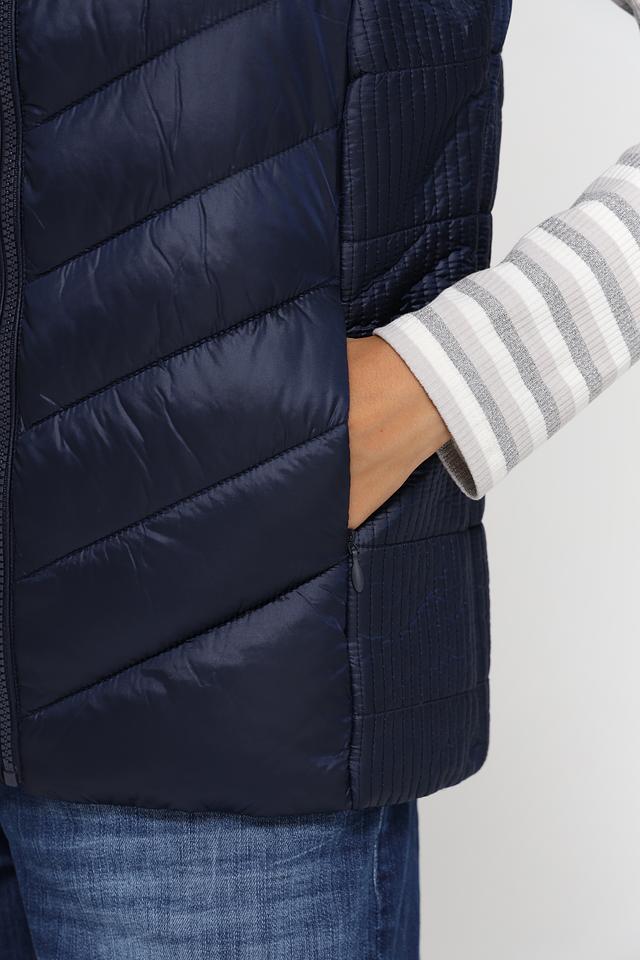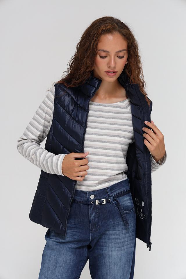 Стильный женский жилет Tom Tailor синего цвета – отличный выбор для создания многослойных образов. Удобный крой и стеганая текстура обеспечивают комфорт и тепло в прохладную погоду. Идеально сочетается с повседневной одеждой. Состав: полиэстер 100%